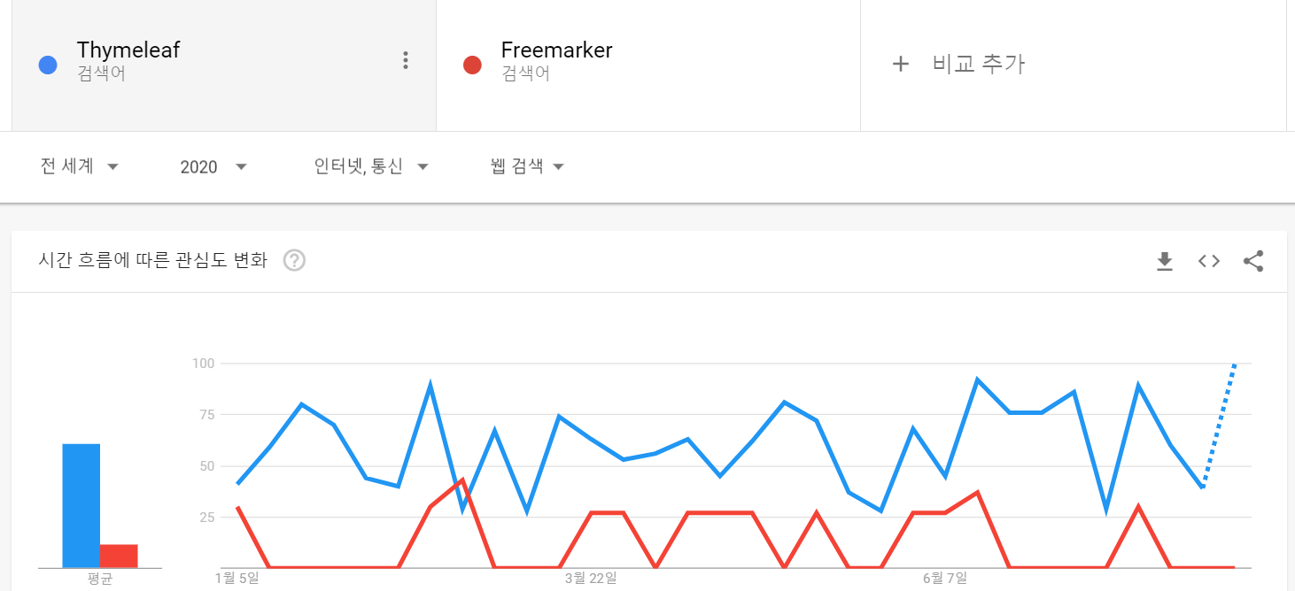 아래는 2020년 Thymeleaf와 Freemarker의 구글 트렌드표이다.
